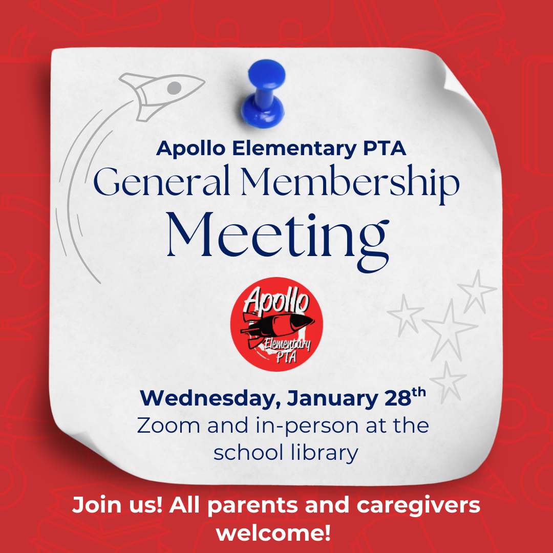 Wednesday, January 28th: Apollo PTA General Membership Meeting, Hybrid